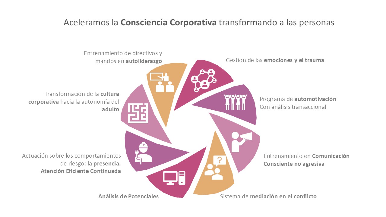 Creamos experiencias de trabajo compartido para el cambio con equipos directivos, con el objetivo de mejorar la seguridad, la innovación, la calidad, la eficiencia operativa, la productividad y el compromiso. Los grupos que, tras el primer año de entrenamiento, mantienen un núcleo de personas voluntarias entrenando en la empresa, dan un paso más en el desarrollo de nuevas capacidades cerebrales incluyendo técnicas de conexión con el inconsciente colectivo y contemplación.